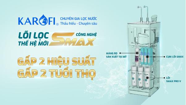 Hệ lõi lọc Smax gấp 2 hiệu suất, gấp 2 tuổi thọ đang được ứng dụng trong máy lọc nước Karofi